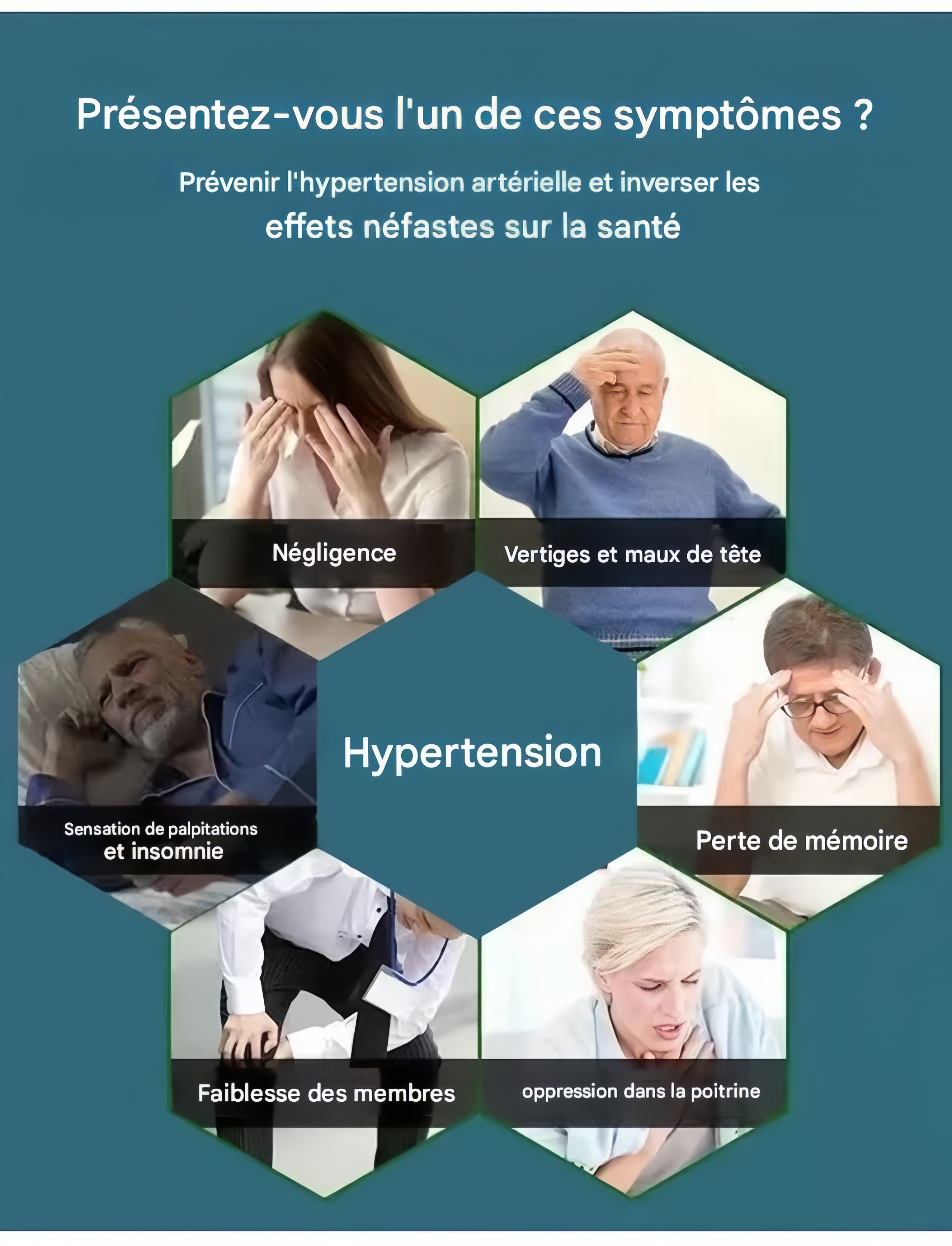 Prévient le développement de l'hypertension et contribue à réguler la tension artérielle. Idéal pour les personnes à risque d'hypertension ou souffrant d'hypertension diagnostiquée. Aide à soulager des symptômes tels que :